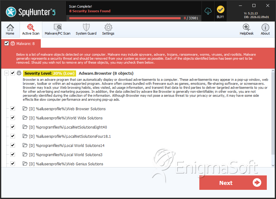 SpyHunter Detects & Remove Adware.Browster
