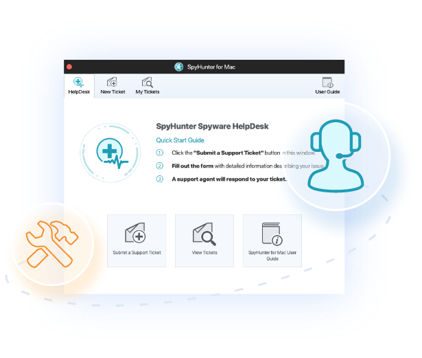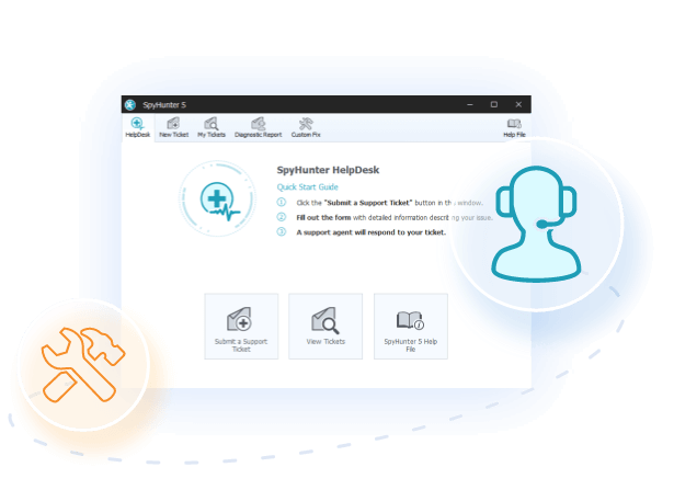 SpyHunter 유료 구독 및 특정 무료 평가판에는 필요에 따라 맬웨어 관련 문제를 지원하기 위해 기술 지원 팀에 일대일 직접 액세스를 제공하는 SpyHunter HelpDesk가 포함됩니다.