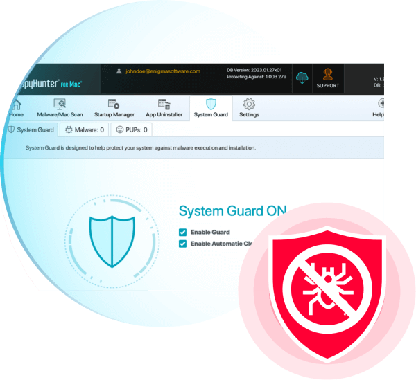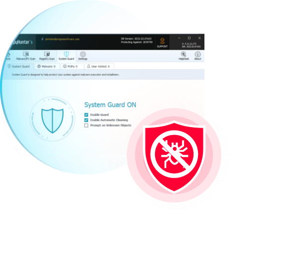 SpyHunter의 고급 검색 엔진과 능동 보호 장치는 여러 수준에서 시스템을 모니터링하고 악성 코드 및 기타 위협이 사용자에게 해를 입히기 전에 차단하도록 설계되었습니다. SpyHunter의 맬웨어 정의는 지속적으로 업데이트되며 클라우드 기술을 활용하여 최신 맬웨어 위협으로부터 보호합니다.