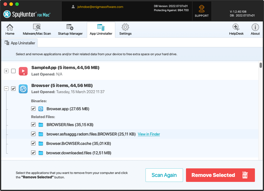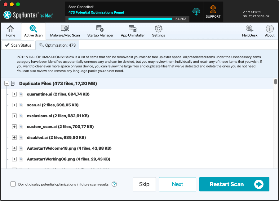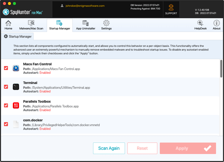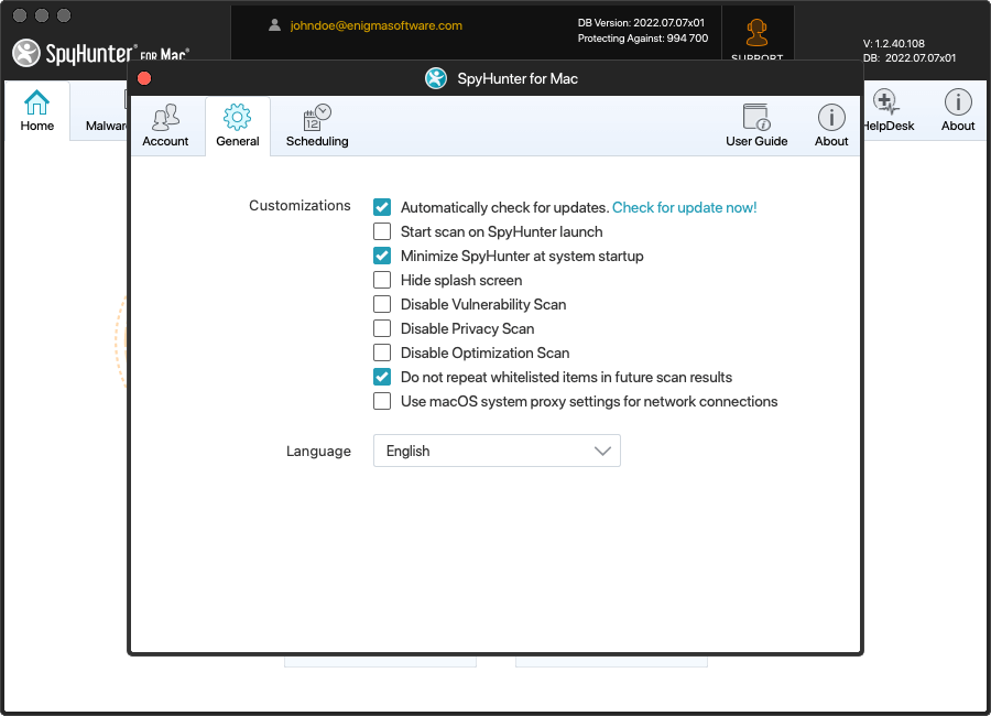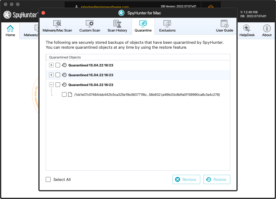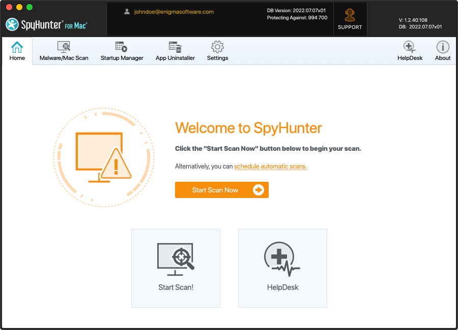 SpyHunter의 고급 독점 맬웨어 방지 엔진은 최신 맬웨어 위협을 탐지하도록 설계되었습니다. SpyHunter의 사용하기 쉬운 자동 제거 엔진은 초보자 및 전문가 사용자에게 트로이 목마, 랜섬웨어, 웜, 바이러스, 스파이웨어, 루트킷, 키로거, 브라우저 하이재커, 애드웨어 및 기타 위협을 효과적으로 제거할 수 있는 기능을 제공합니다.