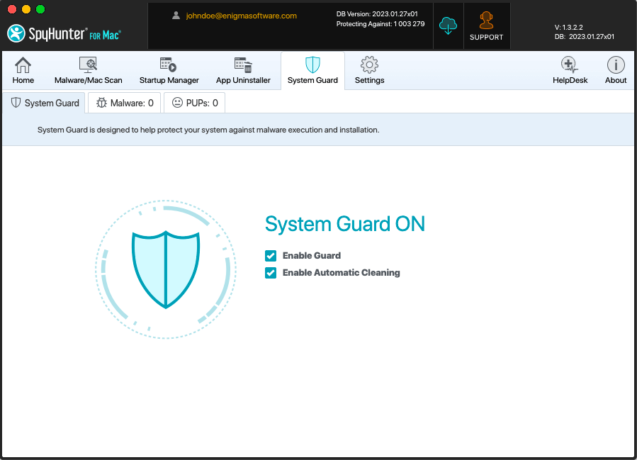 맬웨어를 차단하는 고급 가드SpyHunter의 고도로 최적화된 시스템 보호 장치는 맬웨어 및 기타 위협이 시스템에 피해를 입히고 개인 정보 및 개인 데이터를 손상시키기 전에 다운로드 및 실행을 방지하여 컴퓨터를 안전하게 보호하도록 설계되었습니다. |