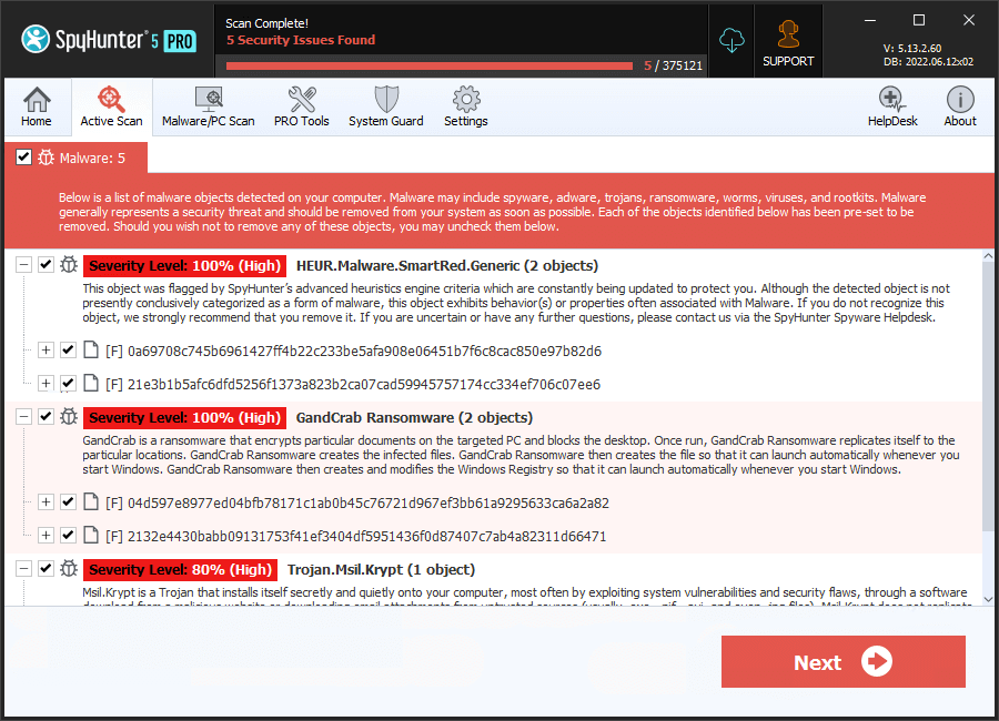 SpyHunter는 강력한 맬웨어 제거 기능, 최신 위협을 차단하도록 설계된 능동 보호 장치, 고급 안티 루트킷 기술, 맞춤형 맬웨어 수정, 필요할 때 일대일 기술 지원 및 기타 보안 기능을 제공합니다. 모든 기능 살펴보기