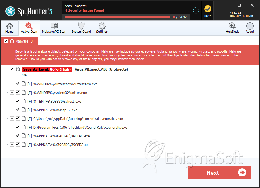SpyHunter Detects & Remove Virus.VBInject.ABJ
