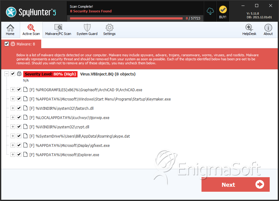 SpyHunter Detects & Remove Virus.VBInject.BQ