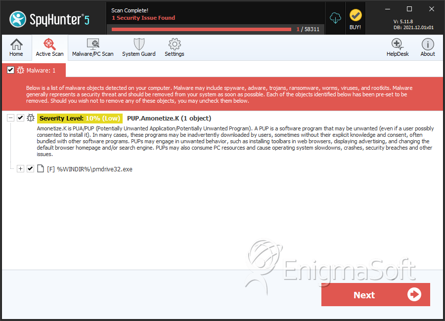 Ranking: The ranking of a particular threat in EnigmaSoft’s Threat Database.