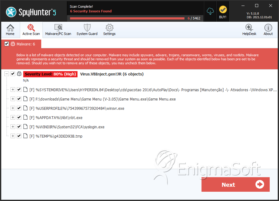 SpyHunter Detects & Remove Virus.VBInject.gen!JR