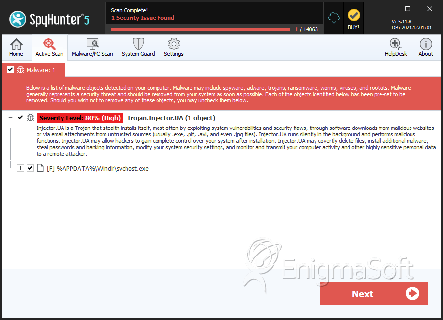 Ranking: The ranking of a particular threat in EnigmaSoft’s Threat Database.