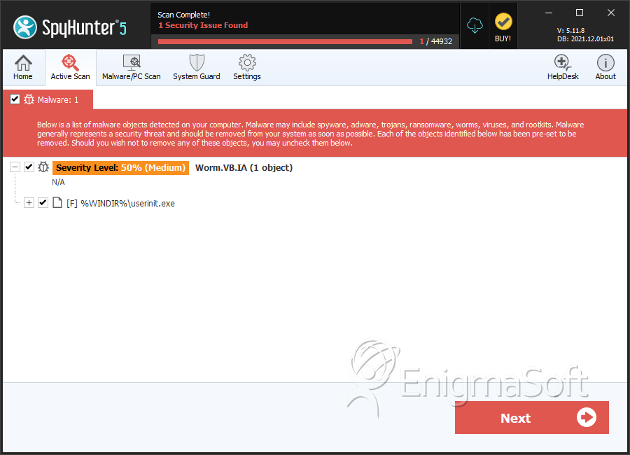 SpyHunter Detects & Remove Worm.VB.IA